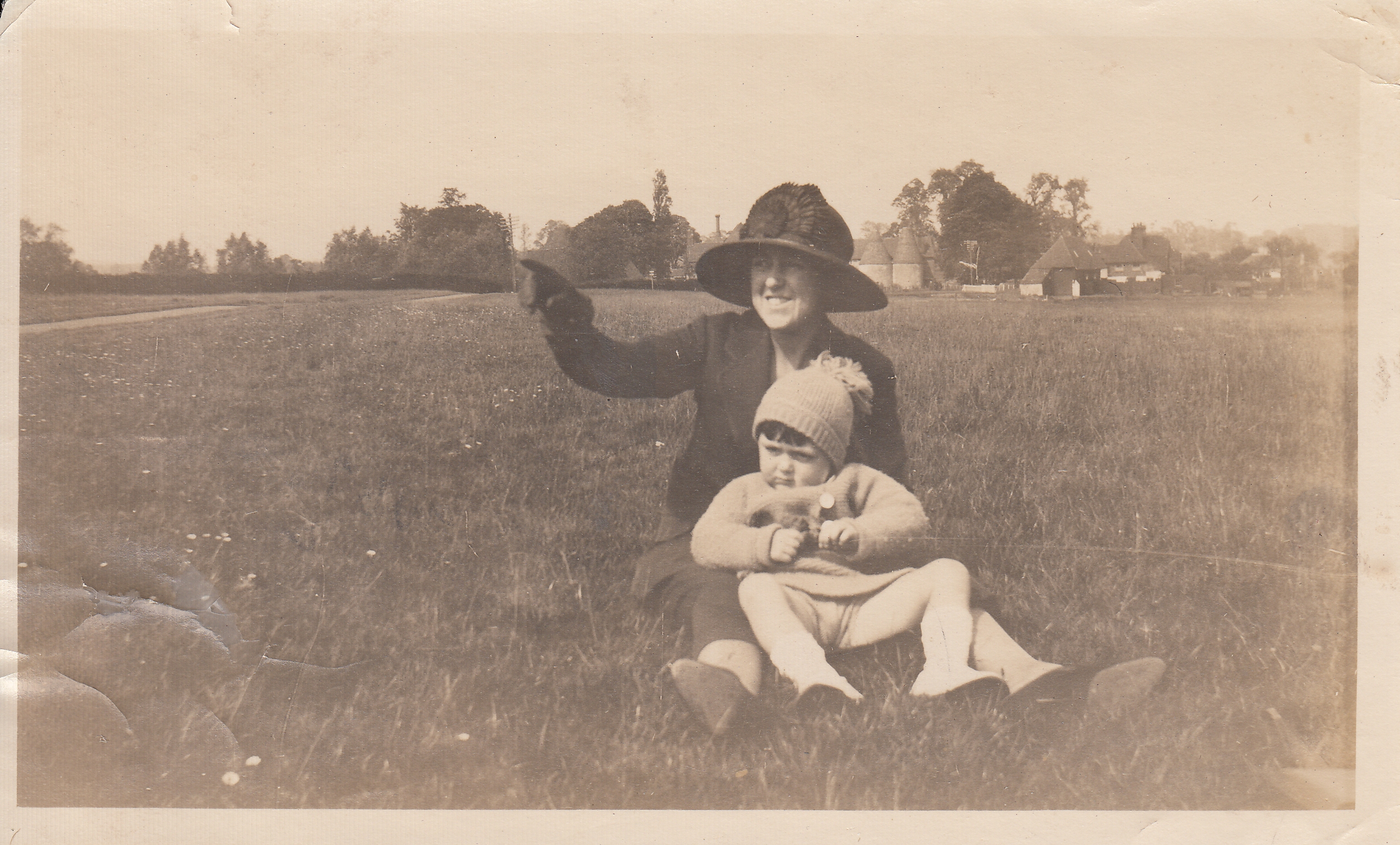 My Great Aunt Alyce with her son Walter, sitting approximately in the north-bound lane of the M20! What a contrast, a beautifuly, peaceful rural scene that would now be a screaming hell.