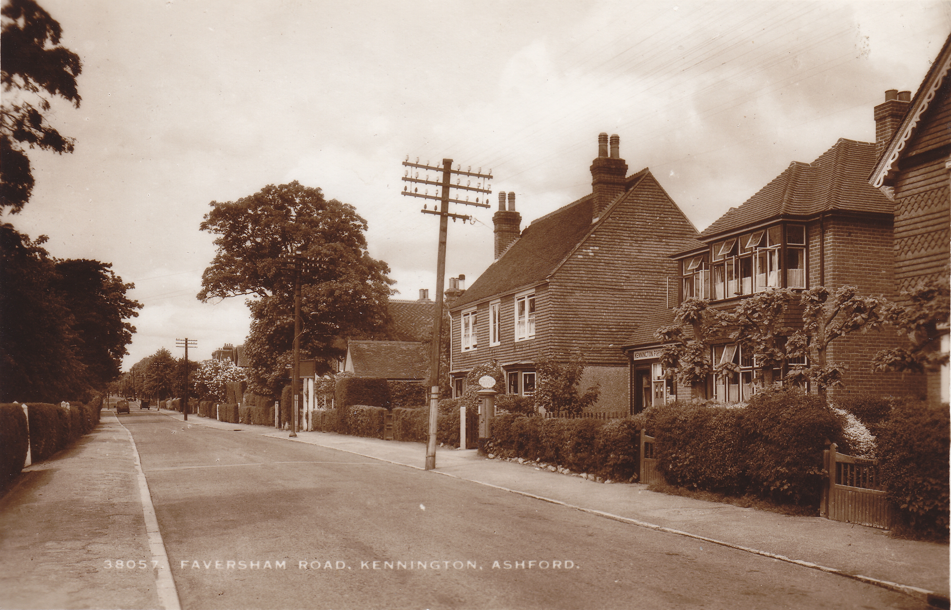 A clear and crisp image of Faversham Road with the old Kennington Post Office just to the right, with the pillarbox outside.